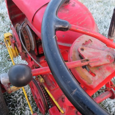 The Ride-A-Matic series, introduced in 1956 was Bolens’ first production of four-wheeled garden tractors. These early models featured robust steel construction and a variable-speed belt-drive transmission or Versa-Matic system, making them practical for mowing, hauling, and other garden tasks. The early rounded-bonnet Ride-A-Matic tractors were never officially sold in the UK. Bolens only began importing Ride-A-Matic tractors to the UK from 1959, with later square-bonnet models, which are more common but still very collectible.